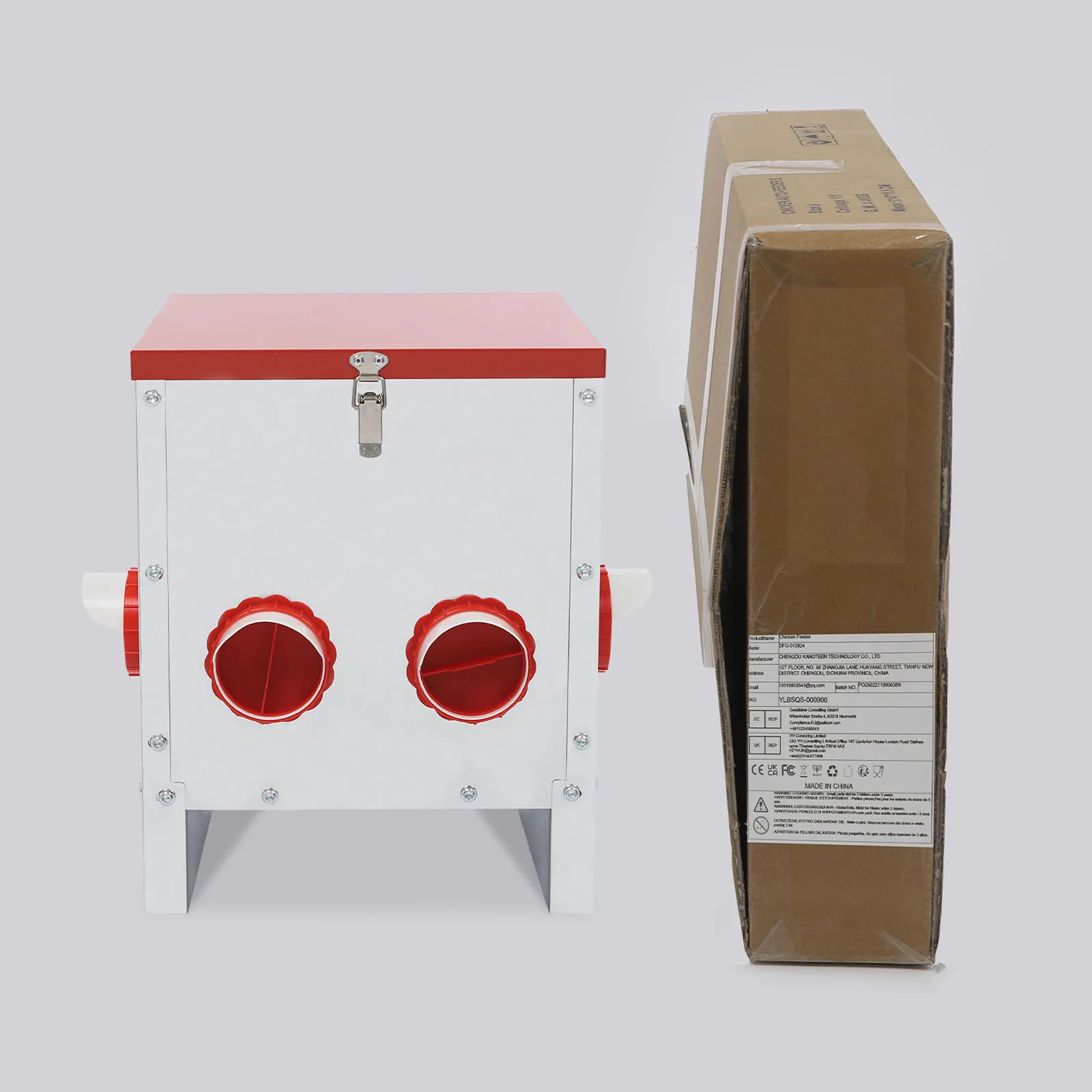 - Thoughtful design features like a sealed structure and rain hood to keep feed dry and fresh.
