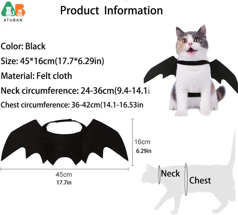 🎃 What is it - Transform your furry friend into an eye-catching spooky sensation with our Adorable Bat Wings Halloween Costume, designed exclusively for cats and small dogs. These lightweight felt wings add a whimsical touch to Halloween festivities, ensuring your pet stands out in any crowd.