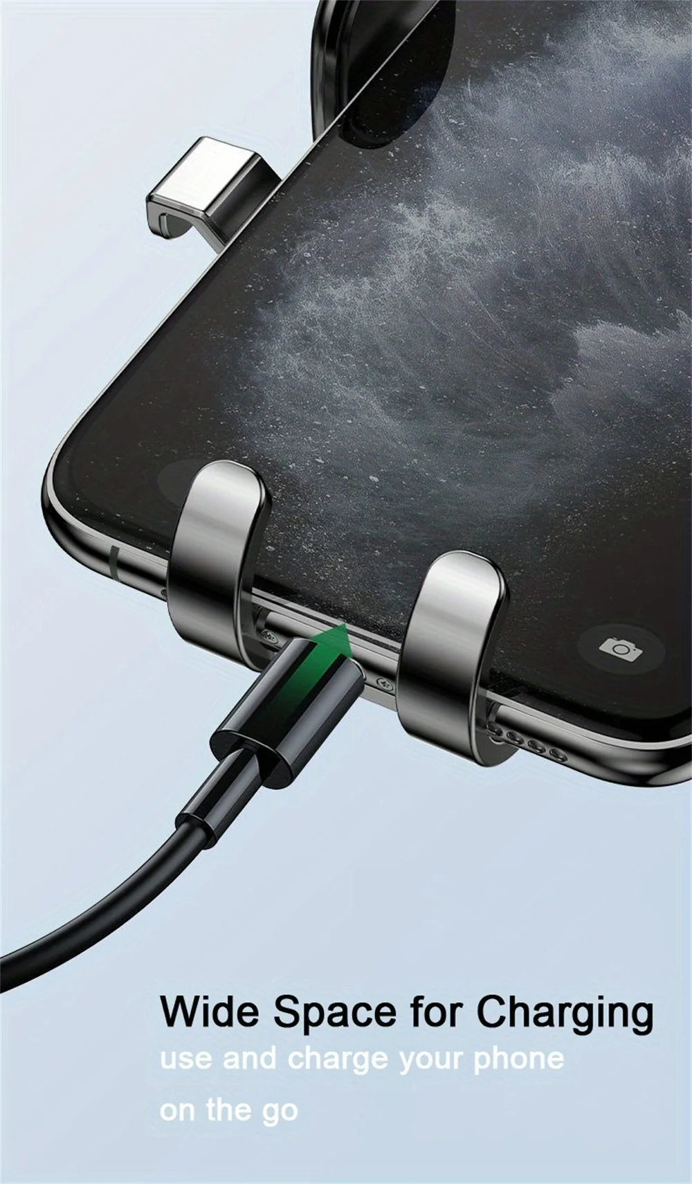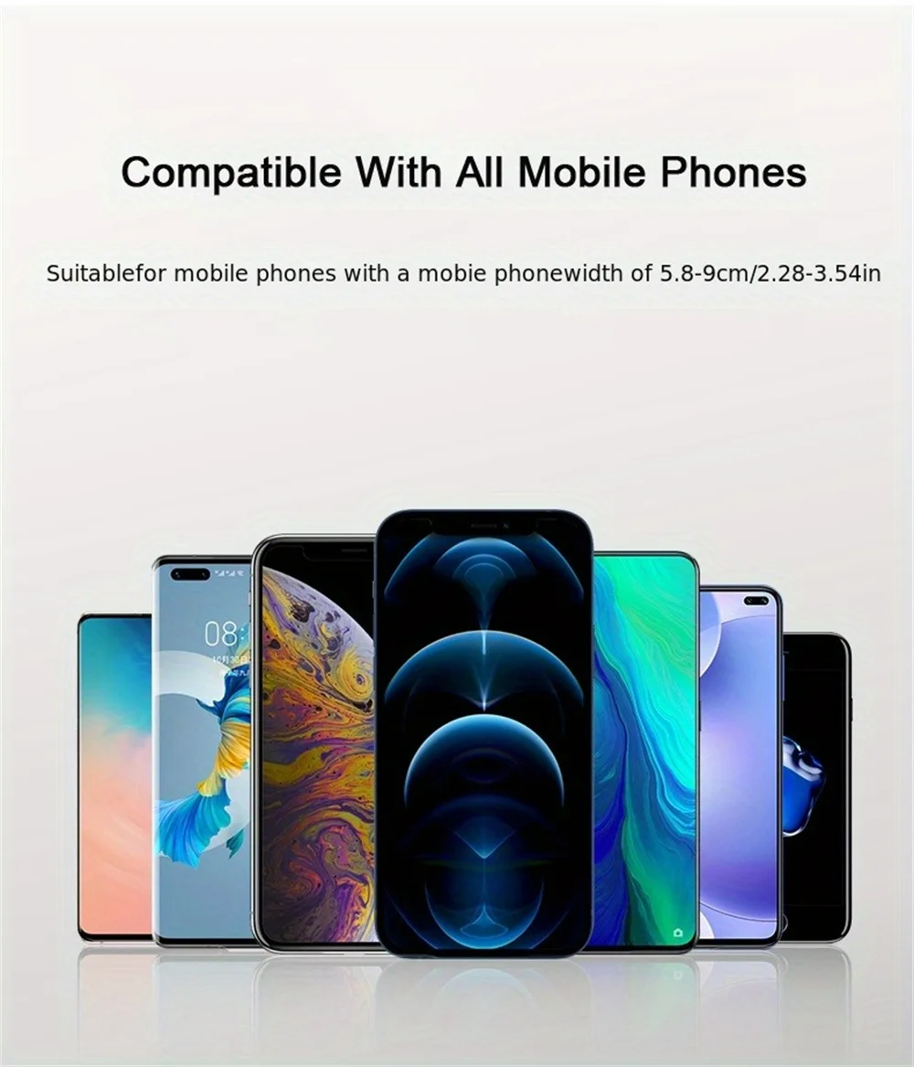 - Versatility: Mounts on desk, dashboard, or air vent.